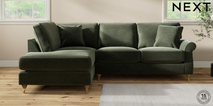 7.2.10 Ashford Relaxed Sit Medium Corner Chaise - Left Hand Luxe Chenille Mid Green Castor - Light | Made Click here to use our website with more accessibility support, for example screen readers