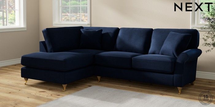 7.2.10 Ashford Relaxed Sit Medium Corner Chaise - Left Hand Luxe Chenille Navy Blue Castor - Light | Made Click here to use our website with more accessibility support, for example screen readers