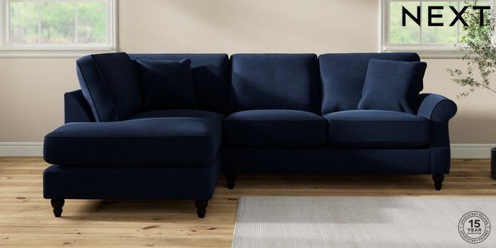 7.2.10 Ashford Relaxed Sit Medium Corner Chaise - Left Hand Luxe Chenille Navy Blue Low Turned - Dark | Made Click here to use our website with more accessibility support, for example screen readers