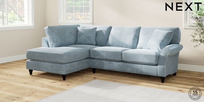 7.2.10 Ashford Relaxed Sit Medium Corner Chaise - Left Hand Plush Chenille Light Blue Low Turned - Dark | Made Click here to use our website with more accessibility support, for example screen readers