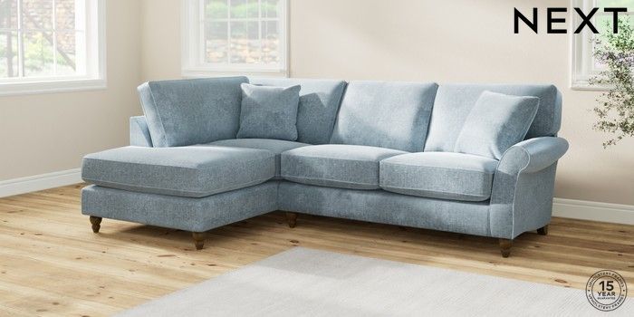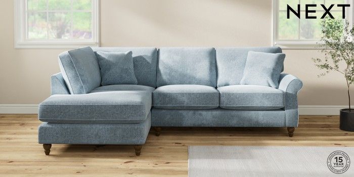 7.2.10 Ashford Relaxed Sit Medium Corner Chaise - Left Hand Plush Chenille Light Blue Low Turned - Mid | Made Click here to use our website with more accessibility support, for example screen readers