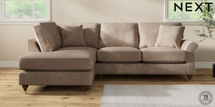 7.2.10 Ashford Relaxed Sit Medium Corner Chaise - Left Hand Plush Chenille Mid Natural Modern Turned Metal Cap - Mid | Made Click here to use our website with more accessibility support, for example screen readers