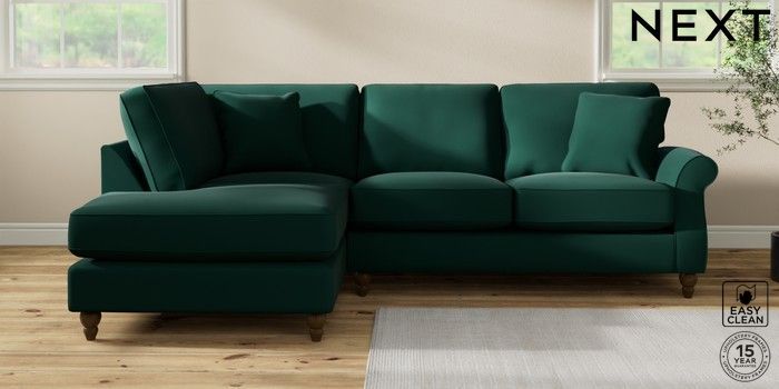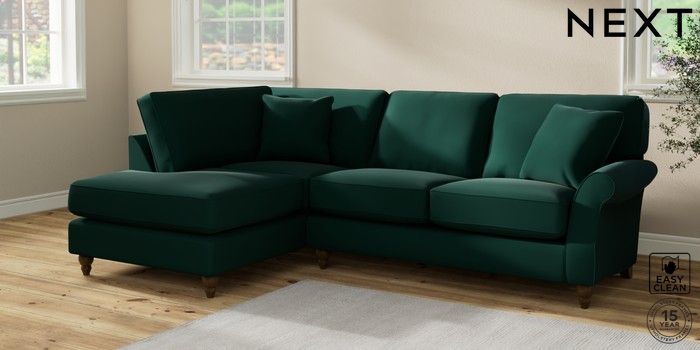 7.2.10 Ashford Relaxed Sit Medium Corner Chaise - Left Hand Plush Velvet Easy Clean Bottle Green Low Turned - Mid | Made Click here to use our website with more accessibility support, for example screen readers