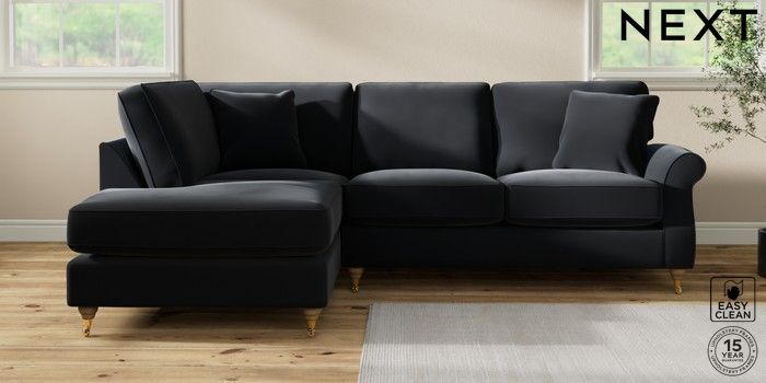 7.2.10 Ashford Relaxed Sit Medium Corner Chaise - Left Hand Plush Velvet Easy Clean Charcoal Grey Castor - Light | Made Click here to use our website with more accessibility support, for example screen readers
