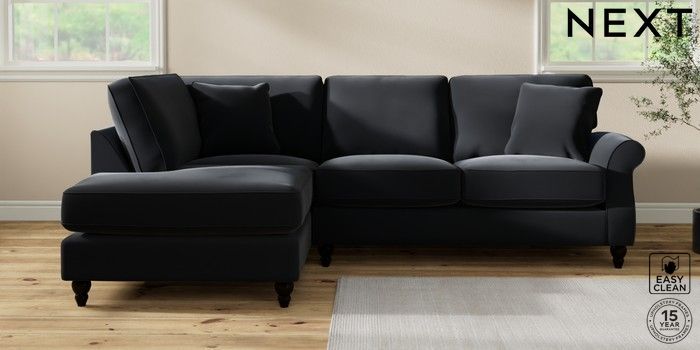 7.2.10 Ashford Relaxed Sit Medium Corner Chaise - Left Hand Plush Velvet Easy Clean Charcoal Grey Low Turned - Dark | Made Click here to use our website with more accessibility support, for example screen readers