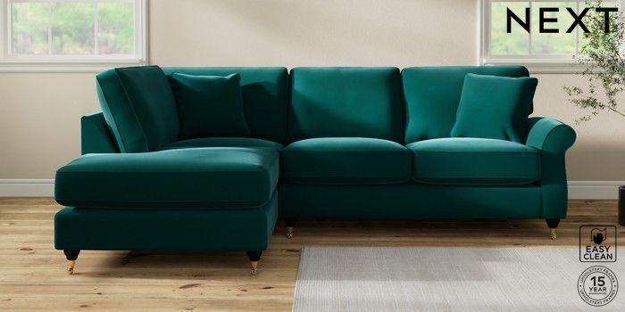 7.2.10 Ashford Relaxed Sit Medium Corner Chaise - Left Hand Plush Velvet Easy Clean Juniper Green Castor - Dark | Made Click here to use our website with more accessibility support, for example screen readers