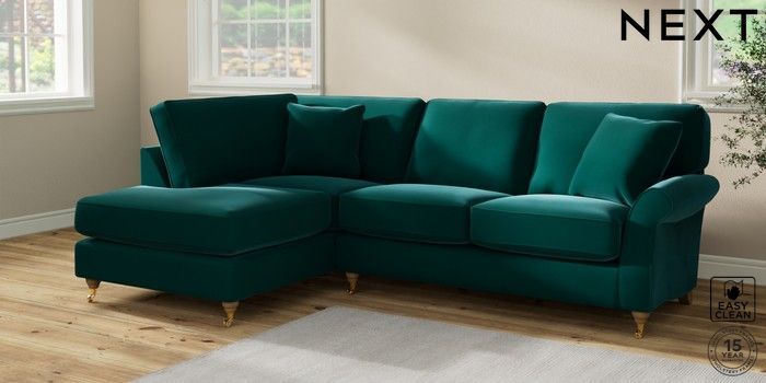 7.2.10 Ashford Relaxed Sit Medium Corner Chaise - Left Hand Plush Velvet Easy Clean Juniper Green Castor - Light | Made Click here to use our website with more accessibility support, for example screen readers