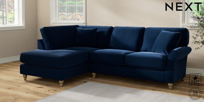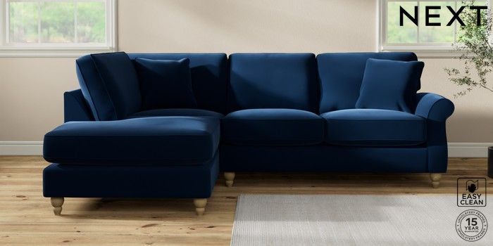 7.2.10 Ashford Relaxed Sit Medium Corner Chaise - Left Hand Plush Velvet Easy Clean Navy Blue Low Turned - Light | Made Click here to use our website with more accessibility support, for example screen readers