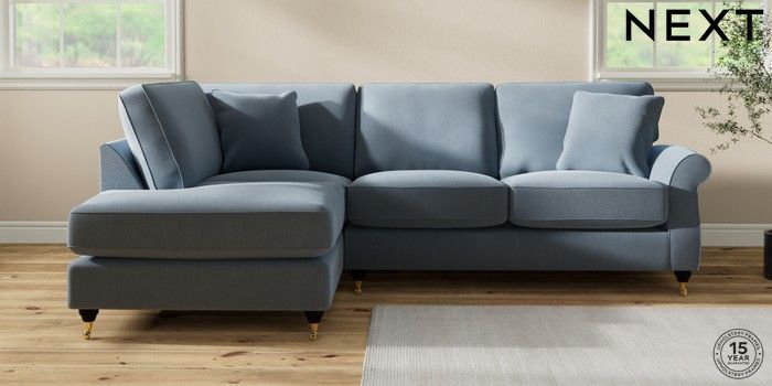 7.2.10 Ashford Relaxed Sit Medium Corner Chaise - Left Hand Relaxed Linen Look Mid Blue Castor - Dark | Made Click here to use our website with more accessibility support, for example screen readers