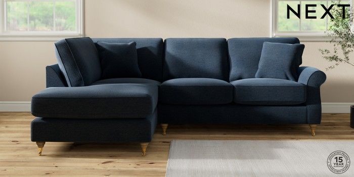7.2.10 Ashford Relaxed Sit Medium Corner Chaise - Left Hand Ripple Chenille Dark Blue Castor - Light | Made Click here to use our website with more accessibility support, for example screen readers