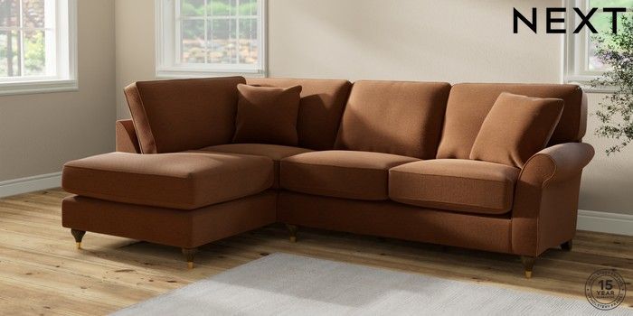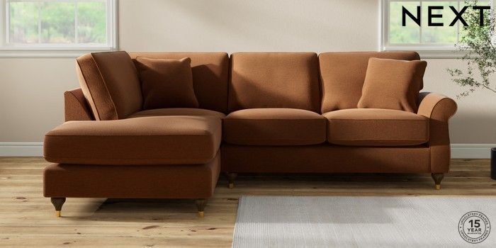 7.2.10 Ashford Relaxed Sit Medium Corner Chaise - Left Hand Ripple Chenille Mid Rust Brown Modern Turned Metal Cap - Mid | Made Click here to use our website with more accessibility support, for example screen readers