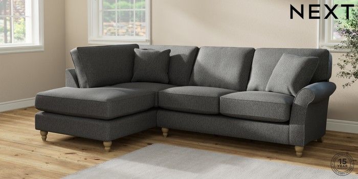7.2.10 Ashford Relaxed Sit Medium Corner Chaise - Left Hand Tweedy Chenille Dark Grey Low Turned - Light | Made Click here to use our website with more accessibility support, for example screen readers
