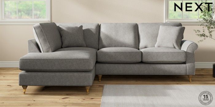 7.2.10 Ashford Relaxed Sit Medium Corner Chaise - Left Hand Tweedy Chenille Mid Grey Castor - Light | Made Click here to use our website with more accessibility support, for example screen readers