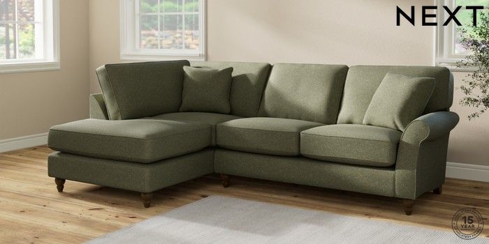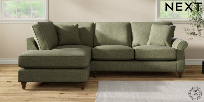 7.2.10 Ashford Relaxed Sit Medium Corner Chaise - Left Hand Tweedy Chenille Mid Moss Green Low Turned - Mid | Made Click here to use our website with more accessibility support, for example screen readers