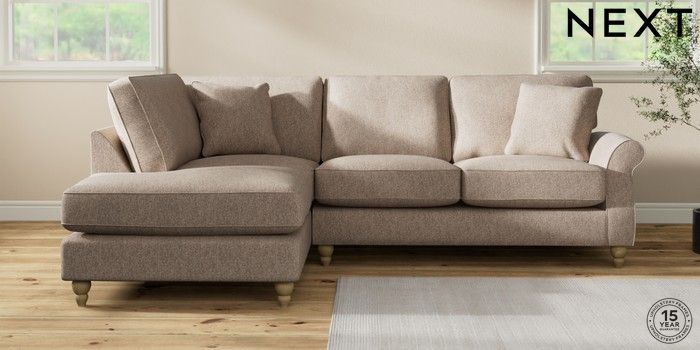7.2.10 Ashford Relaxed Sit Medium Corner Chaise - Left Hand Tweedy Chenille Mid Natural Low Turned - Light | Made Click here to use our website with more accessibility support, for example screen readers