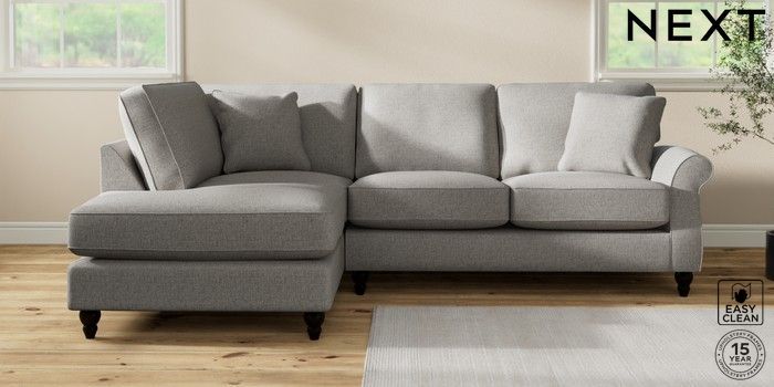 7.2.10 Ashford Relaxed Sit Medium Corner Chaise - Left Hand Woven Chenille Easy Clean Light Grey Low Turned - Dark | Made Click here to use our website with more accessibility support, for example screen readers