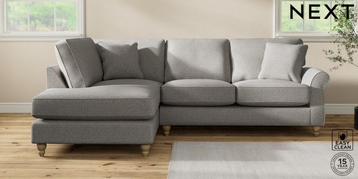 7.2.10 Ashford Relaxed Sit Medium Corner Chaise - Left Hand Woven Chenille Easy Clean Light Grey Low Turned - Light | Made Click here to use our website with more accessibility support, for example screen readers