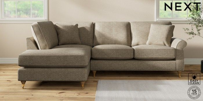 7.2.10 Ashford Relaxed Sit Medium Corner Chaise - Left Hand Woven Chenille Easy Clean Mid Natural Castor - Light | Made Click here to use our website with more accessibility support, for example screen readers