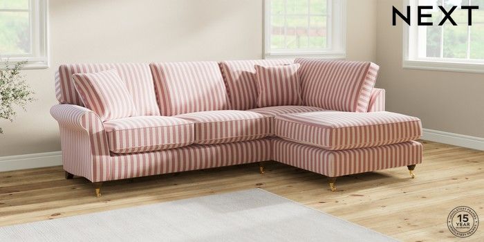 7.2.10 Ashford Relaxed Sit Medium Corner Chaise - Right Hand Bold Chenille Stripe Dark Pink Castor - Mid | Made Click here to use our website with more accessibility support, for example screen readers