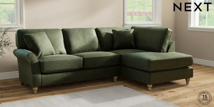 7.2.10 Ashford Relaxed Sit Medium Corner Chaise - Right Hand Boucle Chenille Dark Moss Green Low Turned - Light | Made Click here to use our website with more accessibility support, for example screen readers