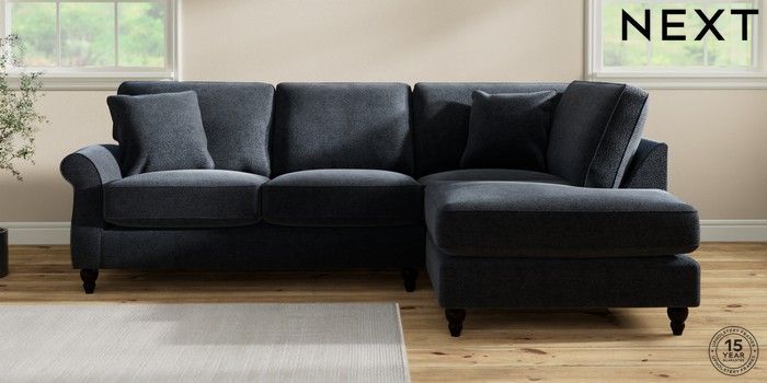 7.2.10 Ashford Relaxed Sit Medium Corner Chaise - Right Hand Boucle Chenille Dark Slate Blue Low Turned - Dark | Made Click here to use our website with more accessibility support, for example screen readers