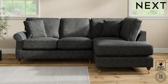 7.2.10 Ashford Relaxed Sit Medium Corner Chaise - Right Hand Boucle Weave Easy Clean Charcoal Grey Castor - Mid | Made Click here to use our website with more accessibility support, for example screen readers