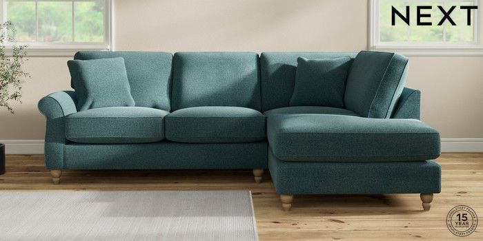 7.2.10 Ashford Relaxed Sit Medium Corner Chaise - Right Hand Chunky Chenille Mid Teal Green Low Turned - Light | Made Click here to use our website with more accessibility support, for example screen readers