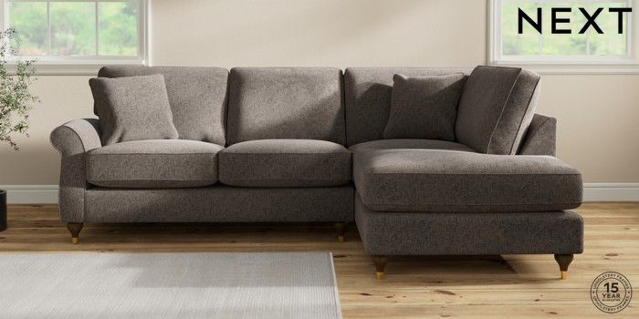 7.2.10 Ashford Relaxed Sit Medium Corner Chaise - Right Hand Chunky Chenille Mink Brown Modern Turned Metal Cap - Mid | Made Click here to use our website with more accessibility support, for example screen readers