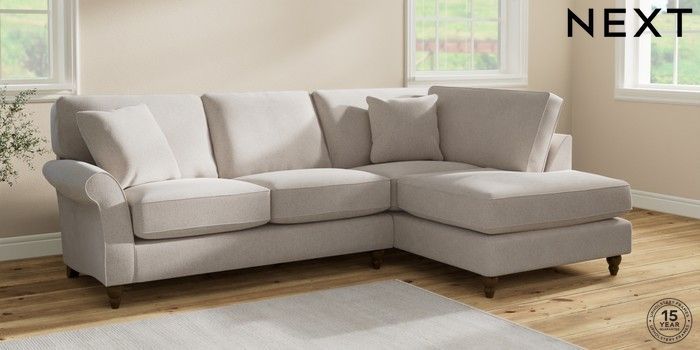 7.2.10 Ashford Relaxed Sit Medium Corner Chaise - Right Hand Chunky Chenille Oyster Low Turned - Mid | Made Click here to use our website with more accessibility support, for example screen readers