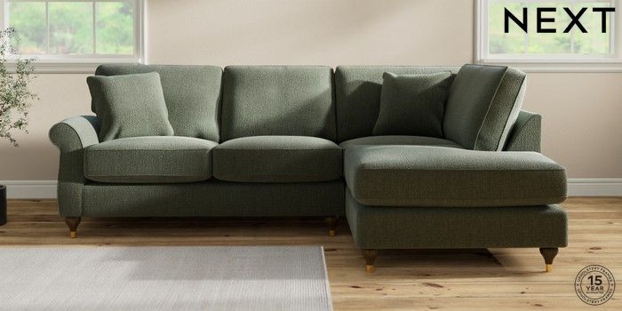 7.2.10 Ashford Relaxed Sit Medium Corner Chaise - Right Hand Chunky Texture Mid Forest Green Modern Turned Metal Cap - Mid | Made Click here to use our website with more accessibility support, for example screen readers