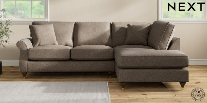 7.2.10 Ashford Relaxed Sit Medium Corner Chaise - Right Hand Chunky Weave Dark Natural Modern Turned Metal Cap - Mid | Made Click here to use our website with more accessibility support, for example screen readers