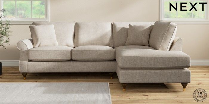7.2.10 Ashford Relaxed Sit Medium Corner Chaise - Right Hand Chunky Weave Mid Natural Modern Turned Metal Cap - Mid | Made Click here to use our website with more accessibility support, for example screen readers
