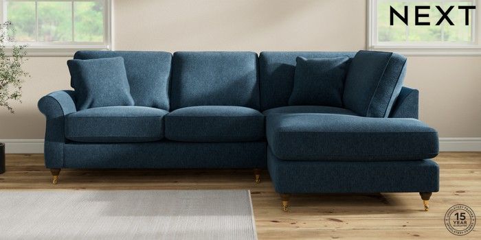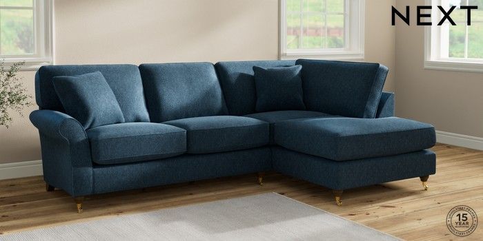 7.2.10 Ashford Relaxed Sit Medium Corner Chaise - Right Hand Cotswold Chenille Dark Blue Castor - Mid | Made Click here to use our website with more accessibility support, for example screen readers