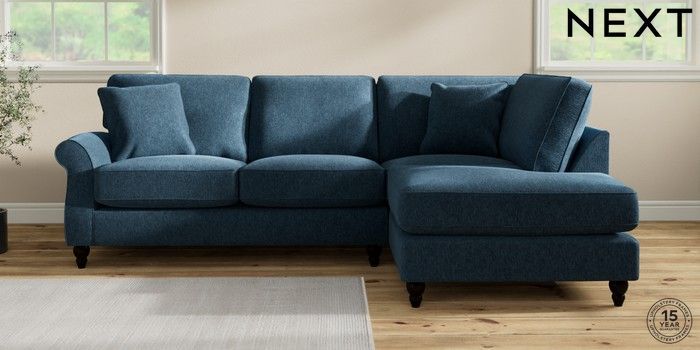7.2.10 Ashford Relaxed Sit Medium Corner Chaise - Right Hand Cotswold Chenille Dark Blue Low Turned - Dark | Made Click here to use our website with more accessibility support, for example screen readers