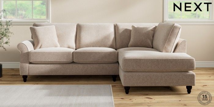 7.2.10 Ashford Relaxed Sit Medium Corner Chaise - Right Hand Cotswold Chenille Light Natural Low Turned - Dark | Made Click here to use our website with more accessibility support, for example screen readers