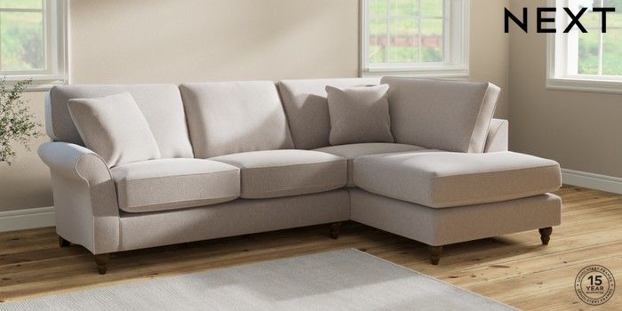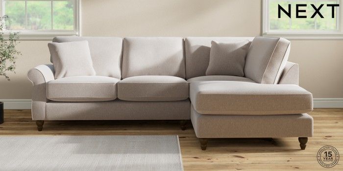 7.2.10 Ashford Relaxed Sit Medium Corner Chaise - Right Hand Cotswold Chenille Oyster Low Turned - Mid | Made Click here to use our website with more accessibility support, for example screen readers