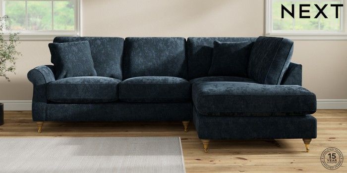 7.2.10 Ashford Relaxed Sit Medium Corner Chaise - Right Hand Distressed Velour Midnight Blue Castor - Light | Made Click here to use our website with more accessibility support, for example screen readers