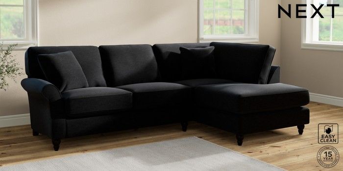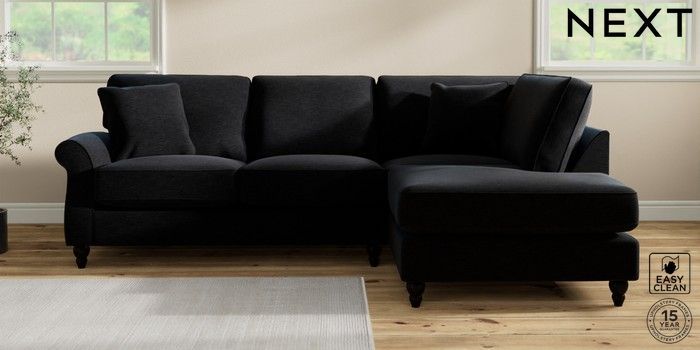 7.2.10 Ashford Relaxed Sit Medium Corner Chaise - Right Hand Fine Chenille Easy Clean Black Low Turned - Dark | Made Click here to use our website with more accessibility support, for example screen readers