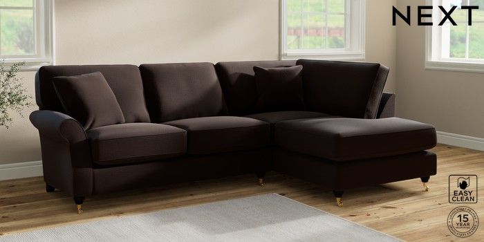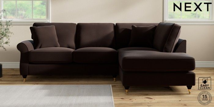 7.2.10 Ashford Relaxed Sit Medium Corner Chaise - Right Hand Fine Chenille Easy Clean Chocolate Brown Castor - Dark | Made Click here to use our website with more accessibility support, for example screen readers