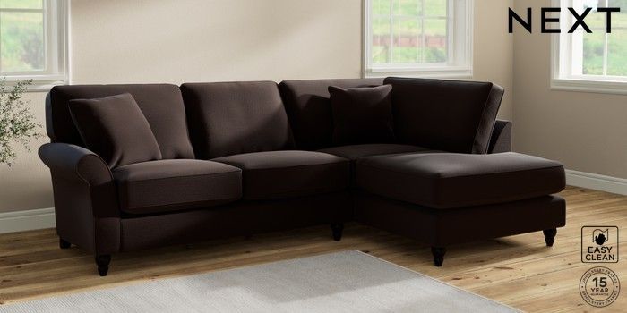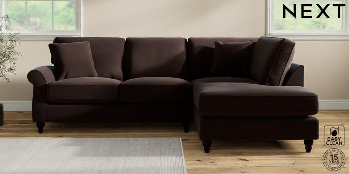 7.2.10 Ashford Relaxed Sit Medium Corner Chaise - Right Hand Fine Chenille Easy Clean Chocolate Brown Low Turned - Dark | Made Click here to use our website with more accessibility support, for example screen readers