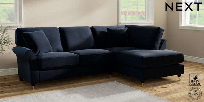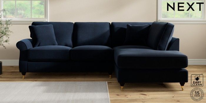 7.2.10 Ashford Relaxed Sit Medium Corner Chaise - Right Hand Fine Chenille Easy Clean Dark Navy Blue Castor - Dark | Made Click here to use our website with more accessibility support, for example screen readers