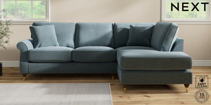 7.2.10 Ashford Relaxed Sit Medium Corner Chaise - Right Hand Fine Chenille Easy Clean Mid Blue Castor - Mid | Made Click here to use our website with more accessibility support, for example screen readers