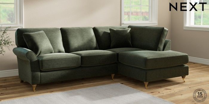 7.2.10 Ashford Relaxed Sit Medium Corner Chaise - Right Hand Luxe Chenille Mid Green Castor - Light | Made Click here to use our website with more accessibility support, for example screen readers