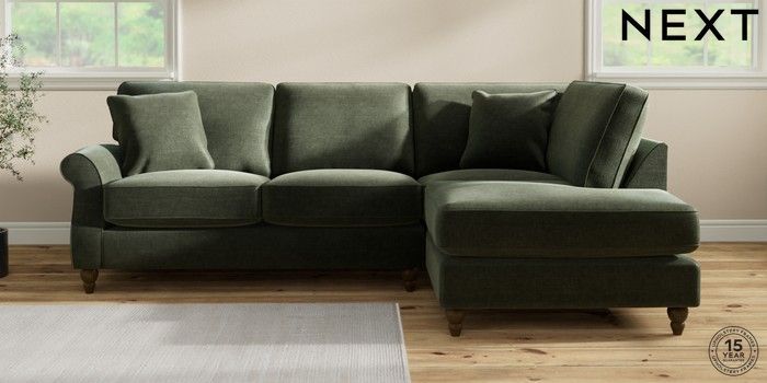 7.2.10 Ashford Relaxed Sit Medium Corner Chaise - Right Hand Luxe Chenille Mid Green Low Turned - Mid | Made Click here to use our website with more accessibility support, for example screen readers