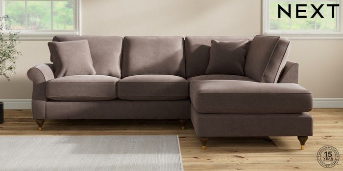 7.2.10 Ashford Relaxed Sit Medium Corner Chaise - Right Hand Luxe Chenille Mink Brown Modern Turned Metal Cap - Mid | Made Click here to use our website with more accessibility support, for example screen readers