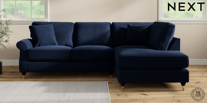 7.2.10 Ashford Relaxed Sit Medium Corner Chaise - Right Hand Luxe Chenille Navy Blue Castor - Dark | Made Click here to use our website with more accessibility support, for example screen readers