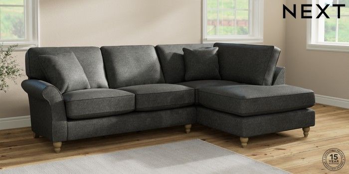 7.2.10 Ashford Relaxed Sit Medium Corner Chaise - Right Hand Plush Chenille Dark Grey Low Turned - Light | Made Click here to use our website with more accessibility support, for example screen readers