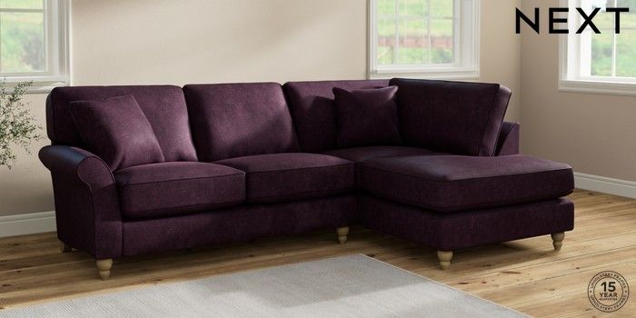 7.2.10 Ashford Relaxed Sit Medium Corner Chaise - Right Hand Plush Chenille Dark Plum Purple Low Turned - Light | Made Click here to use our website with more accessibility support, for example screen readers