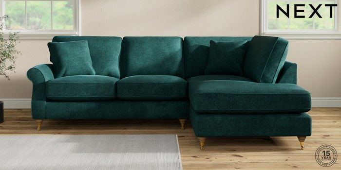 7.2.10 Ashford Relaxed Sit Medium Corner Chaise - Right Hand Plush Chenille Dark Teal Green Castor - Light | Made Click here to use our website with more accessibility support, for example screen readers