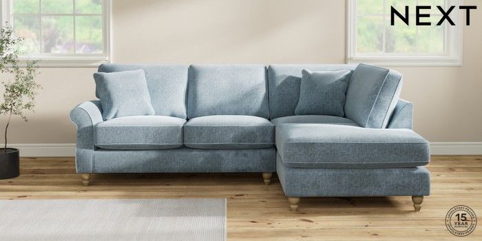 7.2.10 Ashford Relaxed Sit Medium Corner Chaise - Right Hand Plush Chenille Light Blue Low Turned - Light | Made Click here to use our website with more accessibility support, for example screen readers
